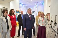 В рамках мероприятий посвященный Дню УЧИТЕЛЯ наша школа организовала выставку творческих работ учащихся "Учителям посвящается..." Выставка украсила торжественное мероприятие во Дворце торжеств, где мэр города Наиль Магдеев вручал награды лучшим работникам отрасли. Преподаватель школы Шеина Елена Сергеевна провела для мэра небольшую экскурсию по выставке и рассказала о работах и достижениях учеников.