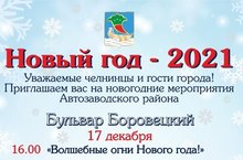 Поздравляем Вас с наступающим новым 2021 годом! На территории Автозаводского района состоятся следующие мероприятия: