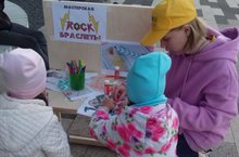 Преподаватели Детской художественной школы №2 провели мастер-класс по изготовлению рок-браслетов из цветной бумаги для маленьких жителей города в рамках фестиваля уличной музыки на площади Азатлык.