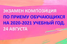 24 АВГУСТА – СОСТОИТСЯ ЭКЗАМЕН ПО ПРИЕМУ ОБУЧАЮЩИХСЯ НА 2020-2021 УЧЕБНЫЙ ГОД.
