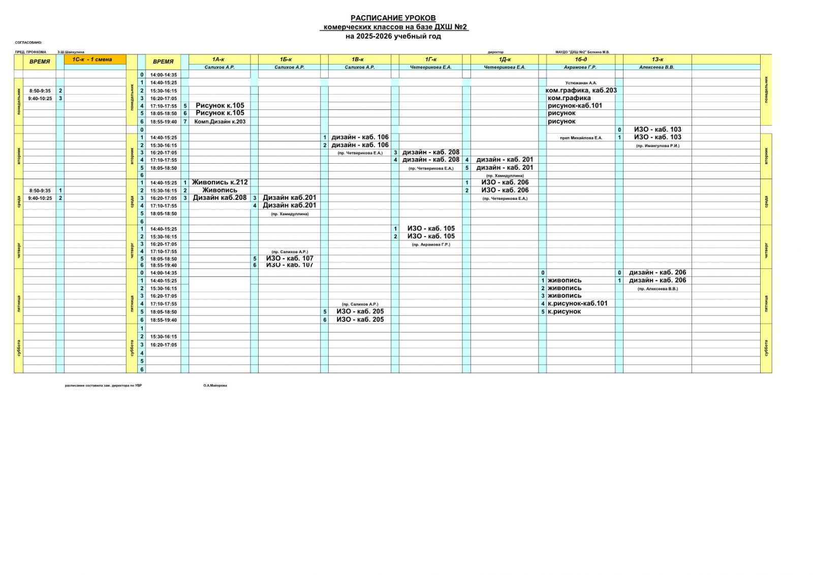 Расписание предпрофессиональной коммерческой группы на 2025-2026 уч.год