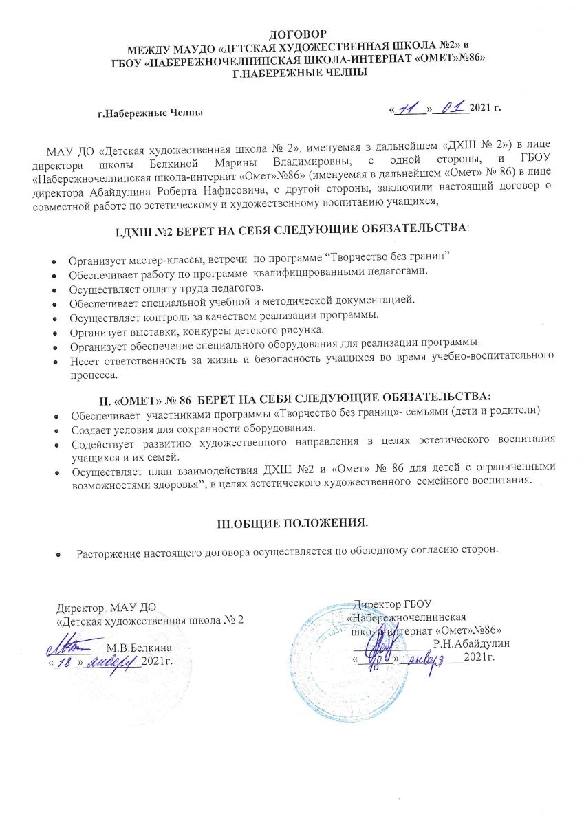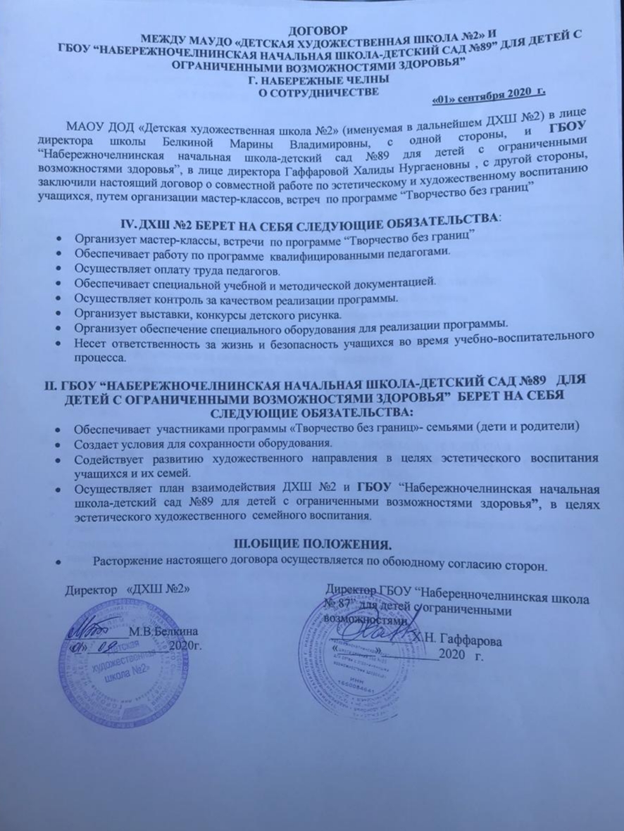 Договор о сетеовм взаимодействии с ГБОУ «Набережночелнинская школа №87 для детей с ОВЗ"