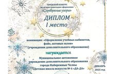 Диплом I место в Городском конкурсе "Серебряные узоры" за новогоднее оформление в номинации «Оформление фойе, актовых и спортивных залов»
