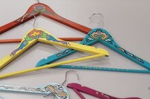 Вешалка для одежды расписывается при помощи специальных акриловых фломастеров, применяемых для деревянных поверхностей. -