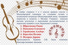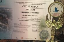 Поздравляем Садыкову Т.В. и ее учеников с победой во II Международном конкурсе инструментального, вокального, хореографического и театрального искусства «SFORZANDO»: Смирнов Даниил, Мутыгуллина Арина - Лауреат I степени, Патракова Елизавета - Лауреат I степени. Молодцы!