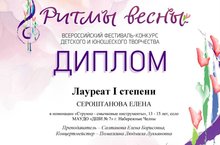 Всероссийский фестиваль-конкурс детского и юношеского творчества «Ритмы весны» г. Казань 05.05.2020