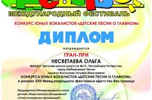 Поздравляем преподавателя Колтунову Татьяну Николаевну и Несветаеву Ольгу, которая заняла Гран-при в Конкурсе юных вокалистов «Детские песни о главном» в рамках XXII Международного фестиваля «Детство без границ»!