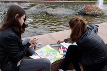 Несмотря на плохую погоду, учащиеся художественного отделения находят все новые объекты (натуры) для этюдов в ходе пленэра