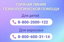 Минпросвещение России организовало круглосуточную горячую линию психологической помощи для детей и родителей на базе ресурсного центра МГППУ. Для детей действует единый общероссийский телефонный номер "Детский телефон доверия" - 8 800 2000 122. Также работает горячая линия для помощи студентам, организованная Минобрнауки России. Телефон горячей линии: 8-800-222-55-71.