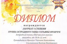Поздравляем учащихся группы эстрадного танца Татьяны Франчук с победой во Всероссийском фестивале-конкурсе детского, юношеского и взрослого творчества "Фактор успеха".