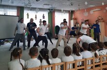Сегодня, в нашем детском саду прошло мероприятие, посвященное Дню рождения великого татарского поэта Габдуллы Тукая. Дети с желанием читали и инсценировали произведения Габдуллы Тукая, исполняли песни, играли в игры, танцевали. В гости к ребятам пришли герои сказок: Шүрәле, Водяная, Коза и Баран. Книги Тукая учат ценить красоту родного края, доброте, призывают быть милосердным, справедливым и смелым. В завершении праздника дети исполнили песню "Туган тел", которая стала гимном татарского народа.