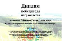 Студентка гр. П097 Абзалова Гулия победила в республиканской научно-практической конференции для студентов и преподавателей профессиональных организаций РТ «Шушы яктан, шушы туфрактан…»
