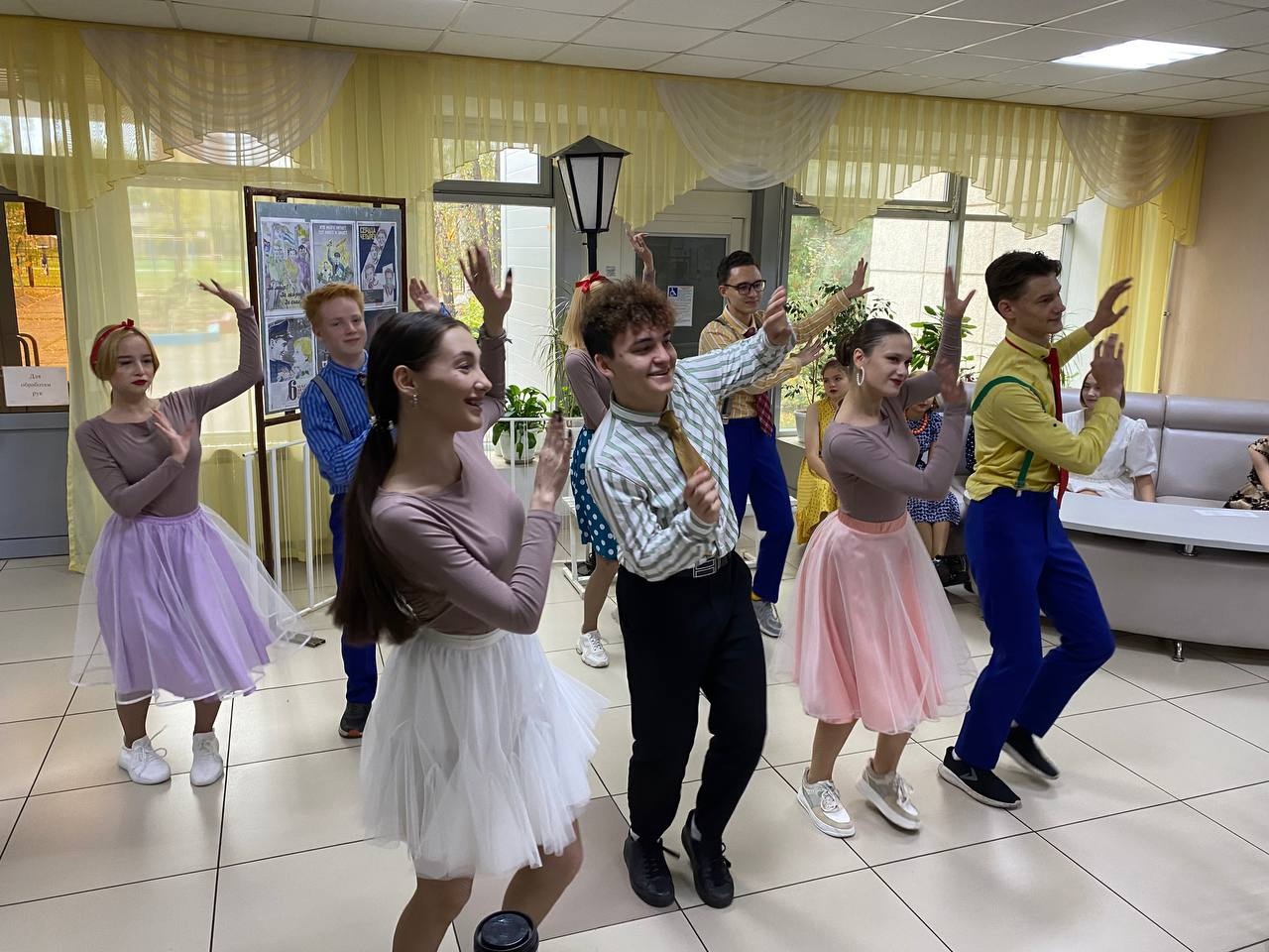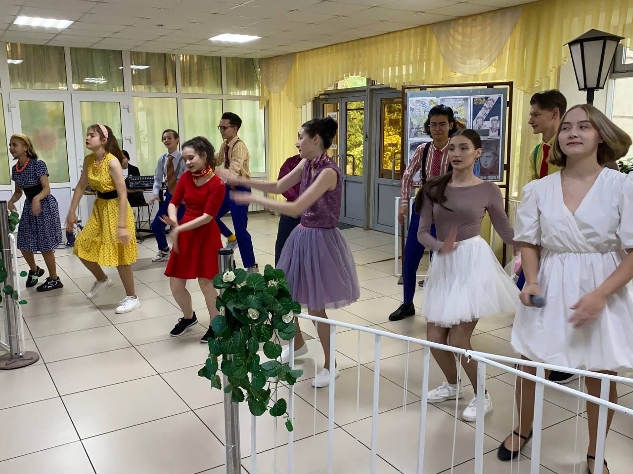 В холле первого этажа была обустроена танцплощадка в стиле 50-х годов, где лихо отплясывали самые настоящие стиляги, в которых перевоплотились активисты студенческого совета техникума. Невероятный фейерверк танцев и песен - это и «Московский бит», и «Буги-вуги», и «Эй, моряк», «Любите девушек» и многие другие, покорил всех присутствующих. А, самое главное, что в глазах учителей была радость, они улыбались и пританцовывали.