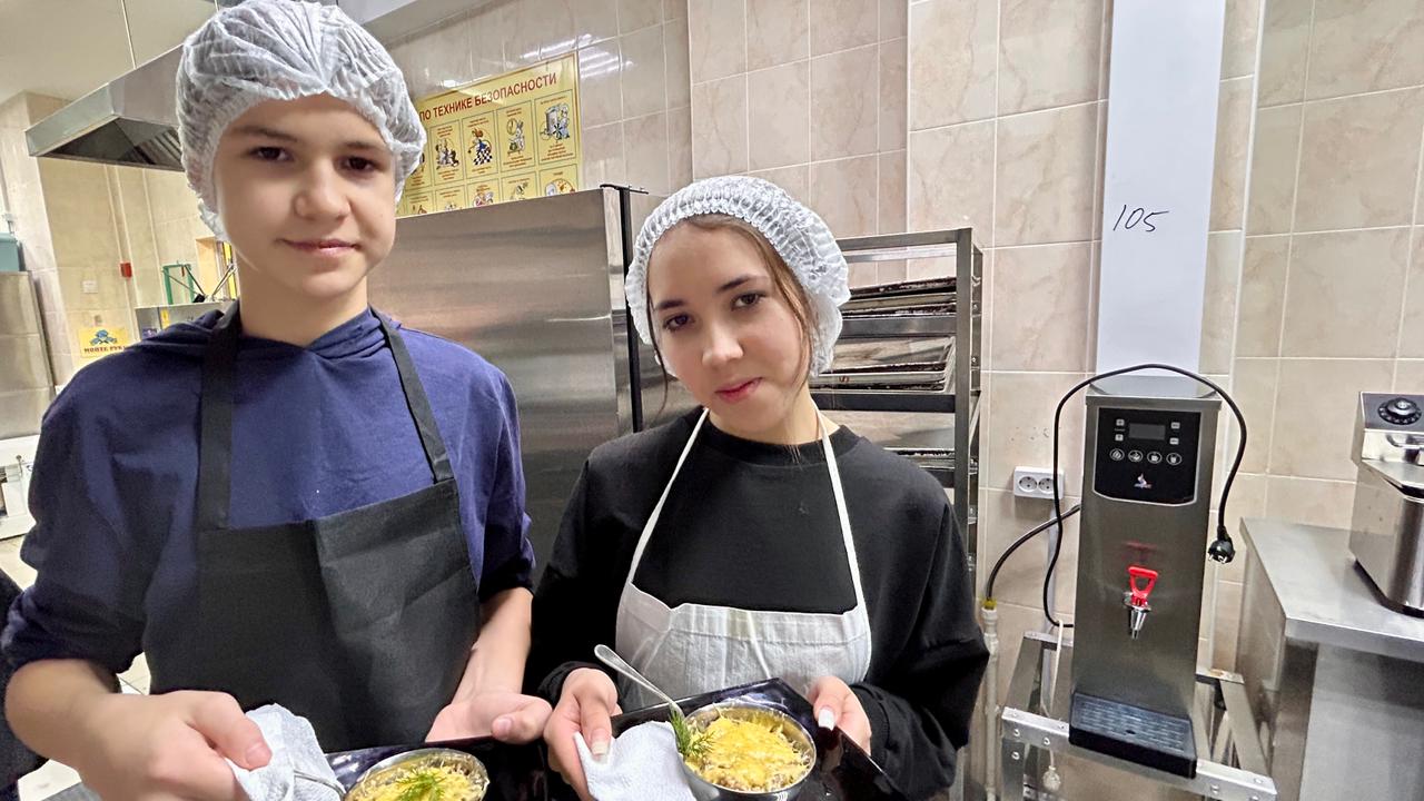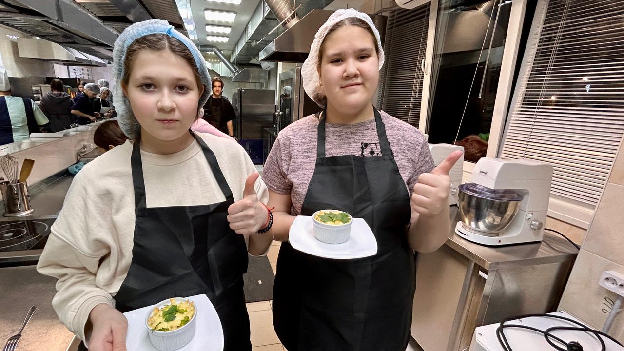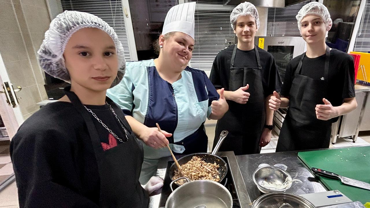 Под руководством преподавателей Сафиулиной Марии Петровны и Морозовой Ольги Михайловны ребята готовили жульен из мяса курицы и грибов.