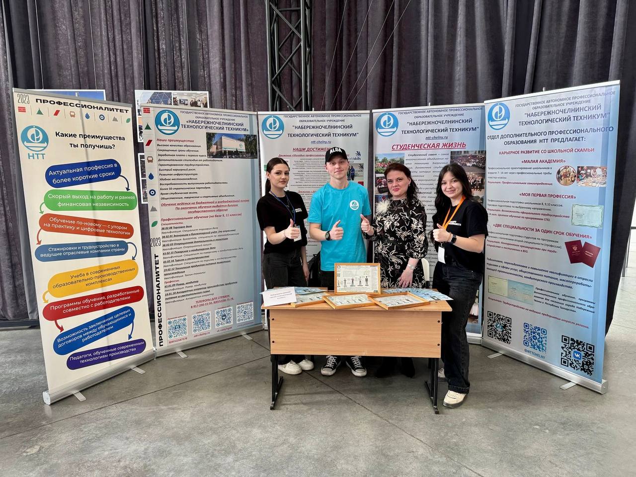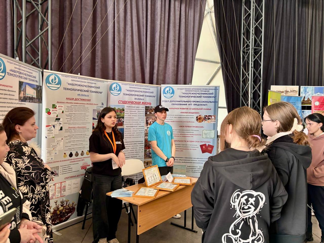Презентация реализуемых направлений подготовки НТТ проходила в основном в форме живого общения с обучающимися школ, которое было направлено на то, чтобы вызвать интерес к профессиям и специальностям, реализуемым в 2025/2026 учебный году. Ребята рассказывали не только о преимуществах обучения, но и о преимуществах проживания в общежитии НТТ, насыщенной внеурочной и спортивной жизни студентов.