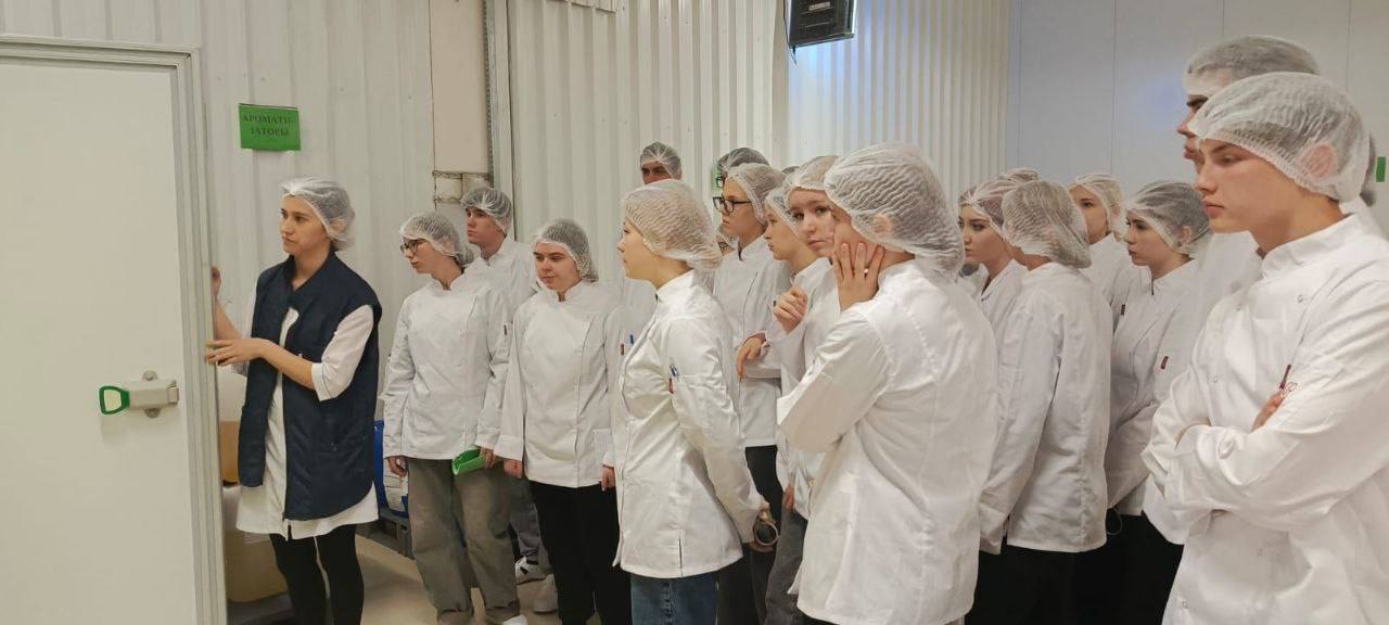 Студенты ознакомились с правилами подготовки сырья для производства , побывали на складе суточного хранения и были впечатлены объемами производства кондитерской фабрики.