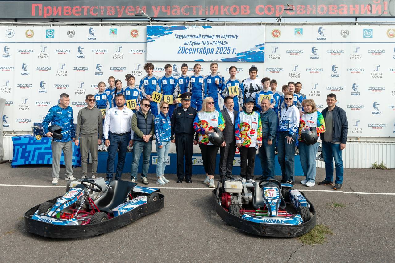 Опубликовано: 20.09.202520 сентября в Набережных Челнах состоялся VII студенческий турнир по картингу на Кубок «КАМАЗа». Мероприятие собрало студентов из 12 учебных заведений города, а среди почетных гостей были представители администрации «КАМАЗа» и мэр города.