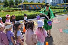 На прогулке ребята играли в народные подвижные игры: русские "Горелки" и "У медведя во бору", татарскую "Тюбетейка", чувашскую "Хищник в море", башкирскую "Юрта" и удмуртскую "Сбей яйцо".