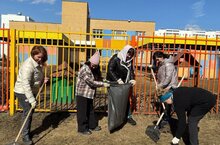 Начиная с первого месяца весны, в детском саду №98 "Планета детства" каждую среду проходят средники по уборке территории детского сада.
