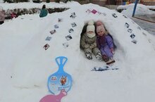 Играя в строительство, дети выкапывают себе дом, украшают постройки с помощью снеголепа и не замечают, как пролетает время в течение активных игр на свежем воздухе.
