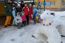 Снежные фигуры друг за другом, стали появляться на участке. Горячий чай, беседы и хорошее настроение - всё это помогало дружной работе родителей и воспитателя.