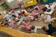 Сегодня день смеха, в группе №9 начался с пижамной вечеринки, надувания шаров, смеха и танца.