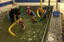 В нашем ДОУ по плану на январь месяц инструктором по обучению детей плаванию организовано и проведено для детей вторых младших групп № 1,5,12 развлечение на воде "Речные приключения".