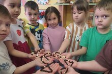 Ребята погрузились в удивительный мир динозавров: сначала попробовали себя в роли палеонтолога, затем на ощупь искали фигурки динозавров среди арбиза, собирали на ИКТ- доске динозавра, называя его части тела на английском языке, а экскурсовод рассказал детям много новых и интересных фактов.