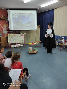 Опубликовано: 28.08.2023В преддверии праздника Дня Республики Татарстан в нашем саду прошло развлечение " Мой любимый Татарстан!" в виде интеллектуальной игры. Цель развлечения - воспитать чувства ответственности, любви к своей родине, расширять представления детей о культуре, традициях родного края, закрепить знания о символиках республики.В гости к детям пришел Ученый, дети вместе с ним играли игру "Что, где, когда?" Пели песни, читали стихи про Родину, играли народные игры, соберали пазлы, играли игры в города. Праздник прошел интересно, увлекательно.