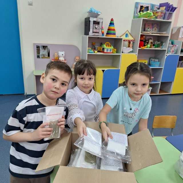 С помощью волонтеров из села Тлянче-Тамак Тукаевского района Раили Талхиновны и Лилии Раисовны, с детьми и сотрудниками детского сада провели мастер-класс по изготовлению "сухого душа" для участников СВО.