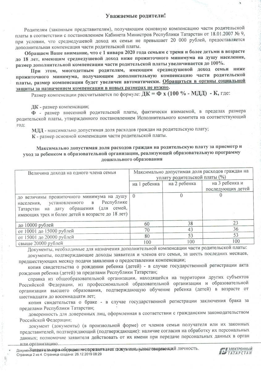 разъяснение родителям, получающим компенсацию по родительской оплате с 01_01_2020.