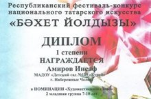 Поздравляем наших воспитанников, участвовавших и победивших в Республиканском фестиваль конкурсе национального татарского искусства "Бәхет йолдызы"