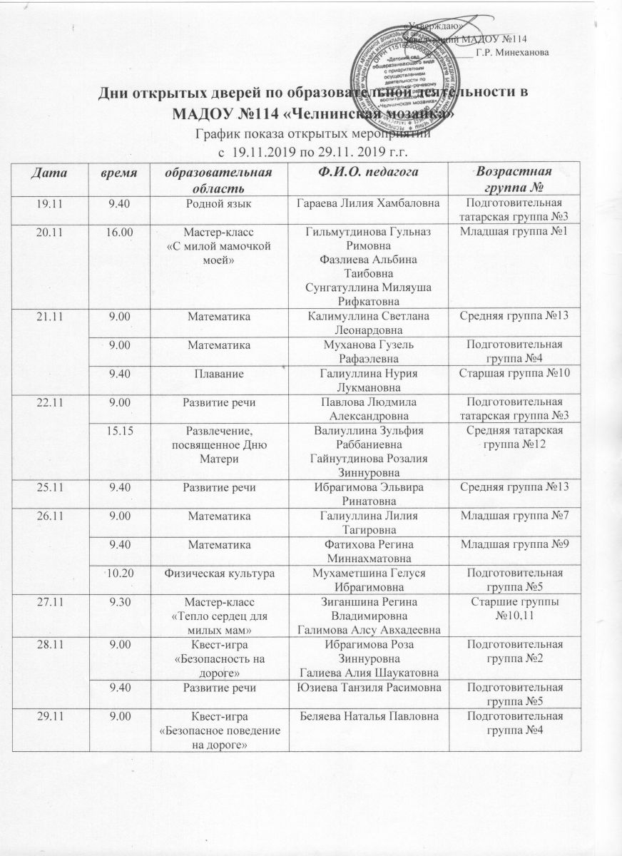 | Короткое название: | МАДОУ "Детский сад № 114 «Челнинская мозаика» |
