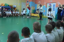 Для воспитаников была организована эксурсия по новой школе, дети побывали в школьной библиотеке, столовой, актовом зале, в спортзале.