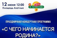 12 июня в 12.00 на площади "Азатлык" пройдет концерная программа " С чего начинается Родина?" посвященная Дню России. В программе принимают участие творческие коллективы и солисты Набережночелнинской филармонии
