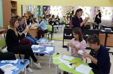 Сегодня в нашем музыкальном зале десткого сада старший воспитатель Лейсан Миннезагитовна и педегог по обучению детей татарскому языку Алина Юнусовна показали мастер класс по созданию "Головоломки нового поколения". Все педагоги приняли активное участие