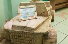 Дедушка воспитанника группы 7 Шаймуллина Ислама, Шаймуллин Энгель Шарифуллович,превратил ствол векового тополя в такой чудо автомобиль,каждый день встречающий всех желающих прокатиться в увлекательное путешествие.