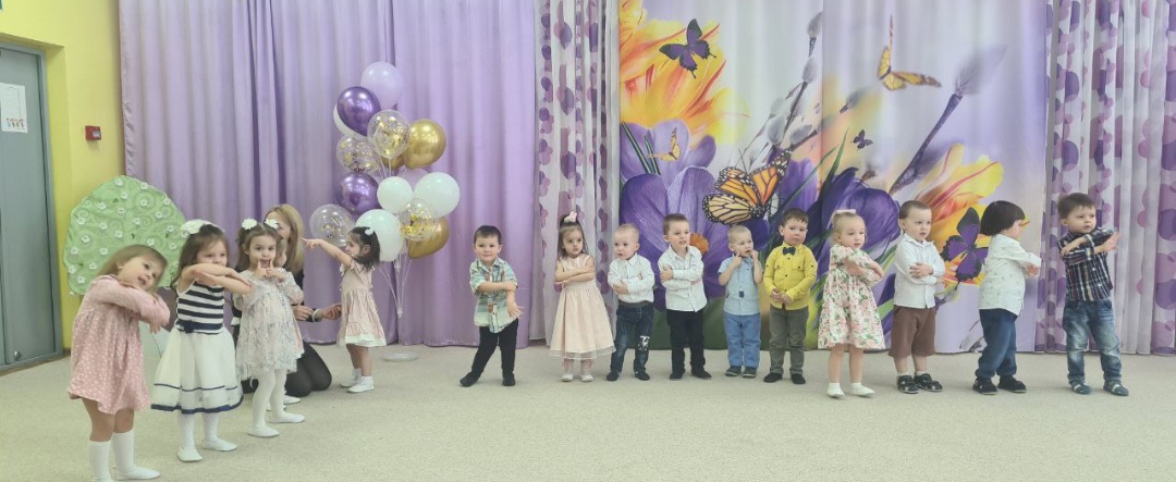 Мероприятие, посвященное первому весеннему празднику в детском саду в первой младшей группе 11 прошло в торжественной и радостной атмосфере. Маленькие детишки с большим удовольствием участвовали в таком прелестном празднике: они очень трогательно и мило пели о весне, о маме. Весело танцевали задорные танцы с ярким героем на празднике-Матрёшкой и Лисичкой.