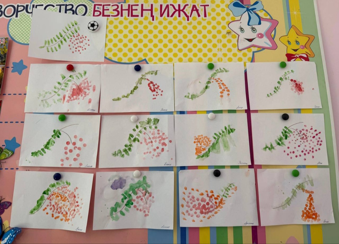 Нетрадиционное рисование ватными палочками «Ветка рябины» в средней группе.