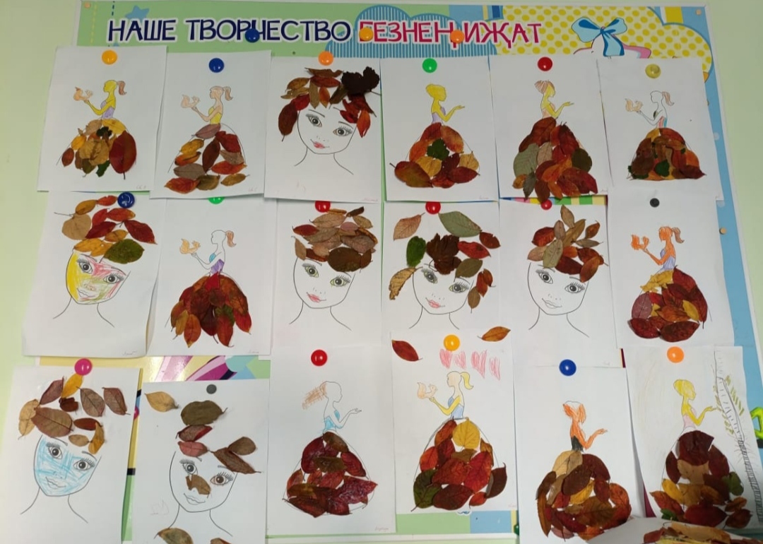 В старшей группе 9 выполнили аппликацию из листьев «Волшебница осень» -