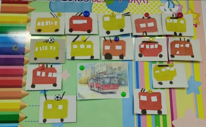 Дети любят изображать различные виды транспорта, особый интерес у них вызывает троллейбус с его характерной конструкцией. Воспитанники 4 старшей группы с удовольствием изготовили его из бумаги, а воспитатель еще и позаботилась о дополнительных материалах и занятие аппликацией превратиться в очень увлекательный процесс.