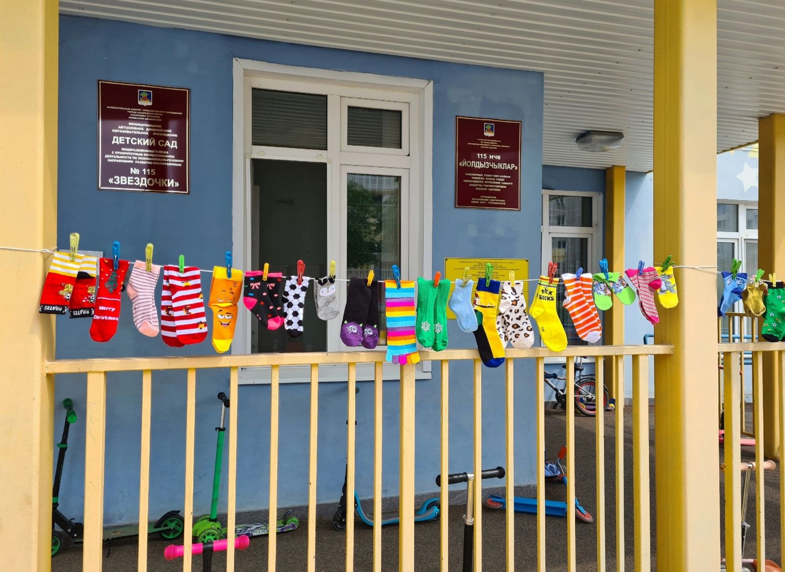 Сегодня в детском саду провели "День носочков". Ребята в группе приветствовали друг друга, делились впечатлениями. Педагоги объяснили, как правильно надевать обувь, не путая правую и левую ноги, о том, как это важно для здоровья, походки и осанки. На прогулке малышей тоже ждали сюрпризы: играли в игры, веселились и шутили.❣️❣️❣️???? Набегались «наши носочки» и уснули крепко-крепко. После сна ребята поговорили о том, что нужно следить за чистотой своих ножек и носочков. Вот так с весельем и шутками прошёл наш день.????????????. У входа в детский сад всех встречала гирлянда из разноцветных носочков????