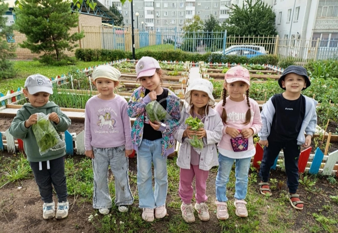 На огороде детского сада дети, совместно с воспитателем, посадили укроп, салат, морковь, свеклу, лук, помидоры, горох и ухаживают за ними. В процессе наблюдений и посильного труда они узнают, что их рост и развитие зависят не только от солнечного света, тепла, влаги, почвы, но и от ухода. Педагоги учат детей поливу, рыхлению, прополке, объясняют, что они рыхлят для того, чтобы к корням растений лучше поступал воздух, учат отличать культурные растения от сорняков.