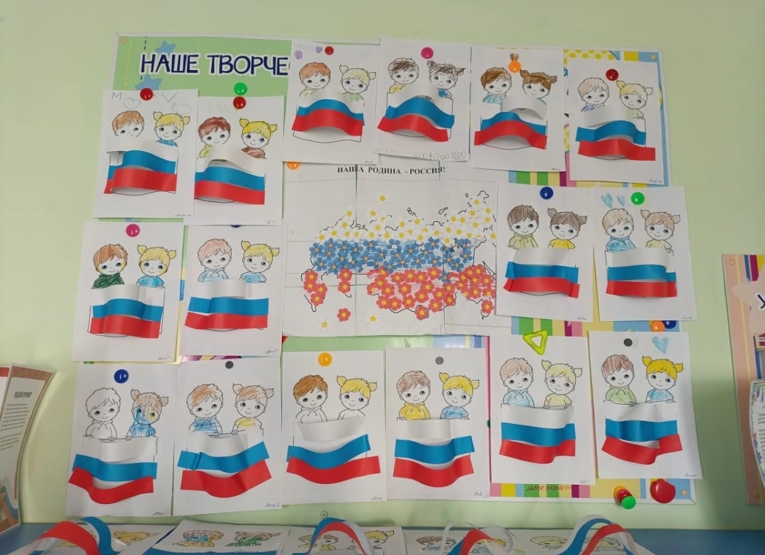 По ходу занятия дети закрепили представление о Российском флаге, запомнили очерёдность цветов и их значение.