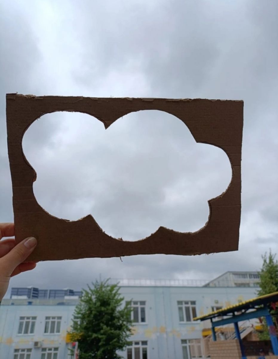 Сегодня воспитанники группы 9 наблюдали за облаками необычным способом, вырезали разные фигуры и смотрели на облака через них.