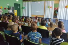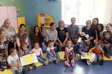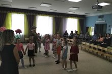 С 03.06.19г начал работать кружок "Малышок" в адаптационной группе для наших будущих воспитанников. Вместе с другом Медвежонком дети путешествовали по сказке "Колобок". Колобок, чтобы его не съели заяц, волк, медведь и лиса, предлагал им разные задания и игры. Дети в парах с родителями и веселым мячиком, называли свое имя. Играли в забавные игры "Карусель"', "Виноватая тучка", "Мишка косолапый", строили из блоков Дьенеша домик для Лисы и Колобка, собирали прищепками "пушистики" для Волка. Лепили лучики из пластилина, чтобы солнышко было ярким! А еще, ребята познакомились со спальней детского сада, где спал друг Медвежонка -Заяц. Заяц провел с детьми гимнастику после сна с помощью оздоровительных дорожек. С хорошим настроением дети и родители попрощались с Медвежонком и Зайчонком. Ждем вас завтра, малыши!!!