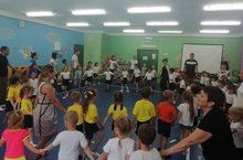 Инструктор по физической культуре Ахметова Татьяна Евгеньевна провела мастер-класс по изготовлению и применению пособий спортивной и оздоровительной направленности. В завершении мастер-классов в физкультурном зале прошёл Флешмоб с участием Бабы-Яги. Даже дождь нам не помеха, когда в саду царит атмосфера сотрудничества.