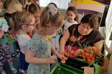 Наши детки из группы №5 в группе сделали свой мини сад и посадили лучок,над каждым лучком фото того,кто сажал,будут ухаживать,поливать и наблюдать как лук дает стрелки.