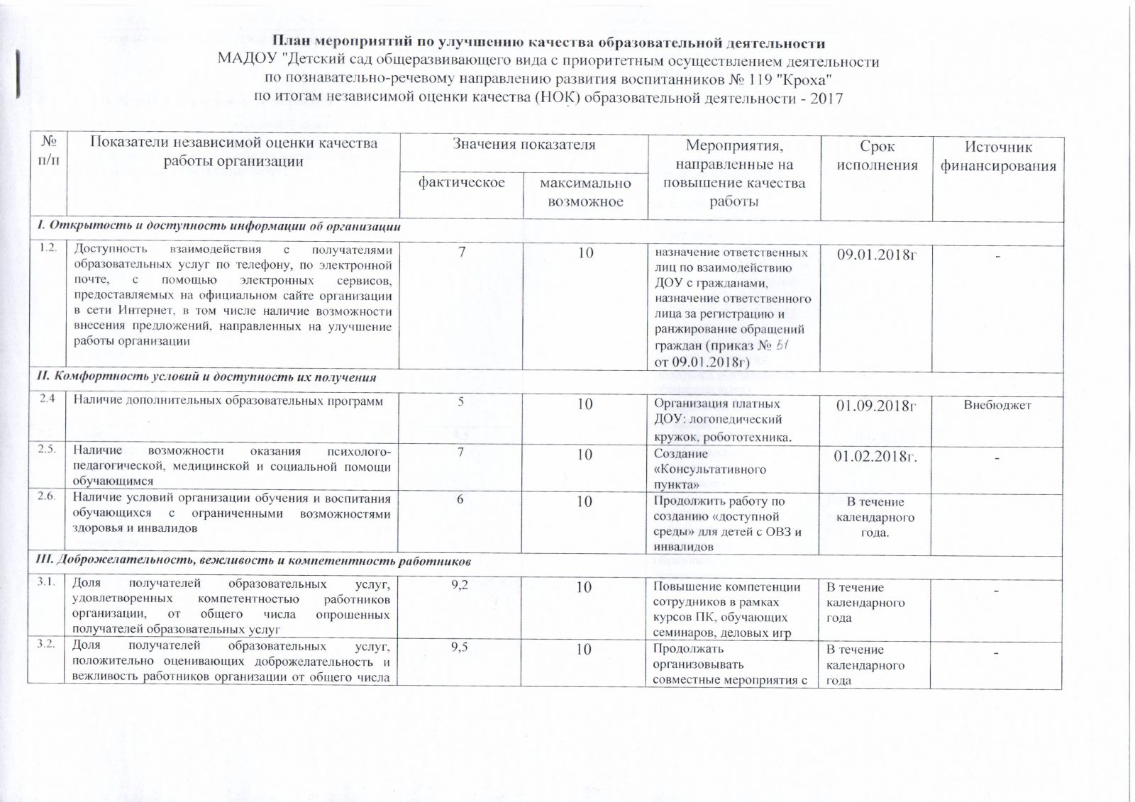 План мероприятий по улучшению образовательной деятельности 15.01.2018