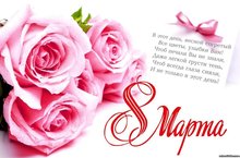Поздравляем с прекрасным праздником 8 Марта всех женщин – наших мам, жен, дочерей, бабушек, подруг, коллег. Это день, когда все вокруг благоухает от запаха весенних цветов, а наши лица озаряют искренние и добрые улыбки. Это особый праздник, когда мужчины чувствуют себя еще сильнее и умнее, а женщины от этого расцветают. Пусть будет побольше таких дней, когда мужчина остается рыцарем, кавалером, а женщина – той, которой такой человек необходим.